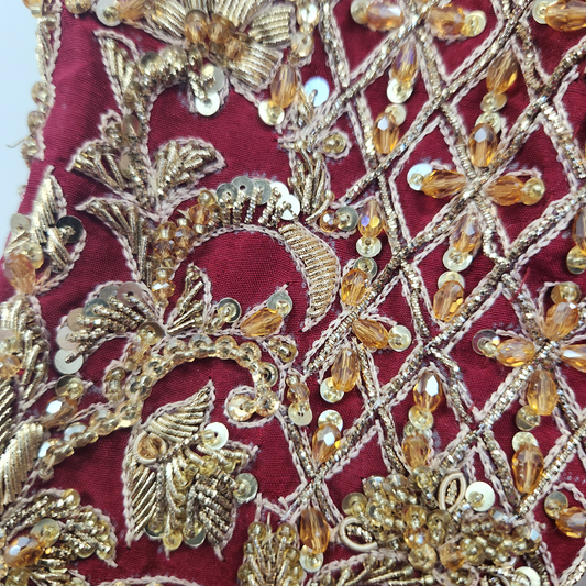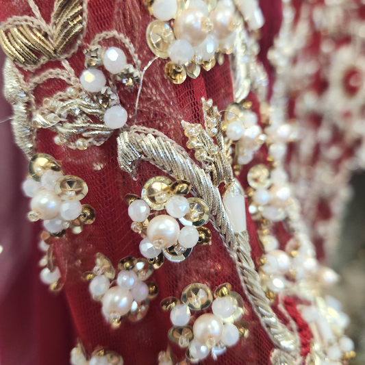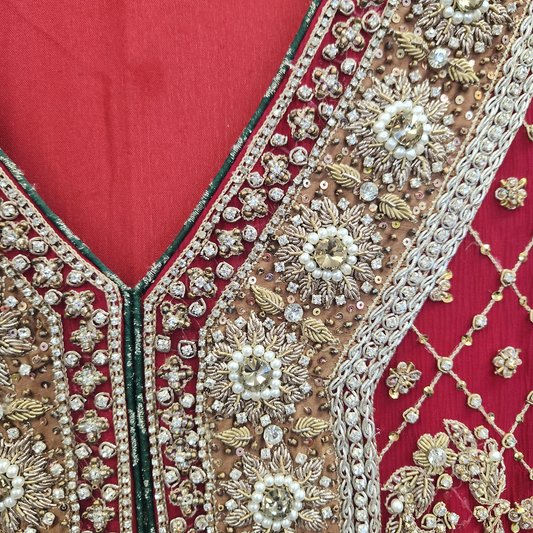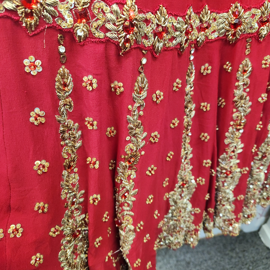 2pc bright red + red stone work and gold intricate embellishments skirt and duppatta